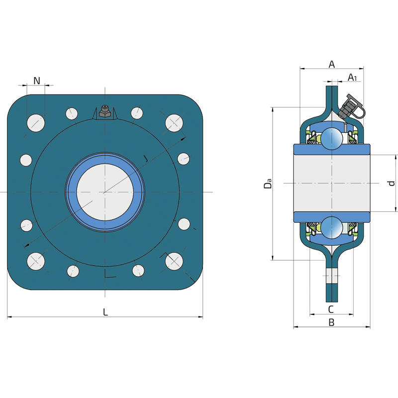 Sealing RUBBER PLUG + T SEAL / T SEAL + RUBBER PLUG 3-lip seal seal on both sides provide long lasting protection of the bearing against the penetration of contaminants. Rubber plugs are protecting the area between the bearing and sheet metal housing.