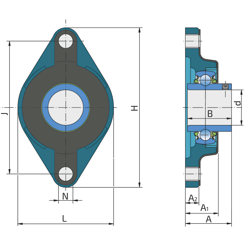 3-lip seal on the base side and 3-lip seal with Metal cover on the front side which is exposed to contaminants. The 3-lip seal on the front side protects the bearing from contaminant penetration. The Metal cover protects the seal from mechanical damage and from entanglement of grass stems of plants and twines.
