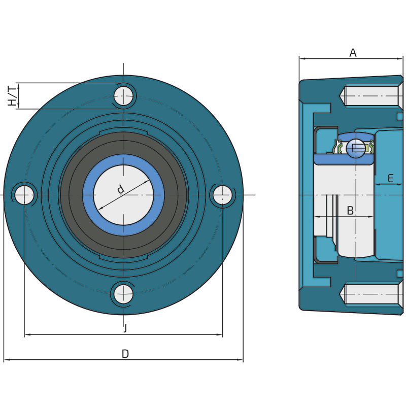 S seal on the base side and S seal with Metal flinger ring and Metal cover ring on the front side which is exposed to contaminants. The Metal cover ring protects the seal from mechanical damage and from entanglement of grass stems of plants and twines.