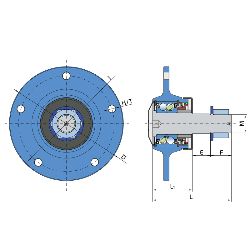 Sealing PLASTIC CAP + CASSETTE SEAL / CASSETTE SEAL + DIRTBLOCK SEAL + METAL SHIELD Two part double lip wheel bearing seal on the both side. This sealing provides excellent protection from contamination and low friction. Front side is totally sealed with a polypropylene shield which prevents all kind of contaminations. The other side is additionally protected with dirtblock seal and with a metal protective cap. Dirtblock seal is designed for hard working condition, half metal – half rubber outside diameter provides reliable seal retention in the bore and improves sealing performance. Inside diameter is covered by rubber and improves sealing performance and easy installation. The metal protective cap protects the seal from mechanical damage and from entanglement of grass stems of plants and twines. This sealing provides maximum protection against liquid or solid contaminants, which significantly extends bearing service life.