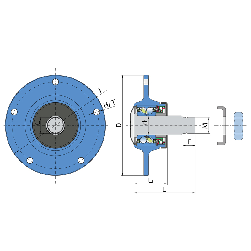 Sealing PLASTIC CAP + CASSETTE SEAL / CASSETTE SEAL + DIRTBLOCK SEAL + METAL SHIELD Two part double lip wheel bearing seal on the both side. This sealing provides excellent protection from contamination and low friction. Front side is totally sealed with a polypropylene shield which prevents all kind of contaminations. The other side is additionally protected with dirtblock seal and with a metal protective cap. Dirtblock seal is designed for hard working condition, half metal – half rubber outside diameter provides reliable seal retention in the bore and improves sealing performance. Inside diameter is covered by rubber and improves sealing performance and easy installation. The metal protective cap protects the seal from mechanical damage and from entanglement of grass stems of plants and twines. This sealing provides maximum protection against liquid or solid contaminants, which significantly extends bearing service life.