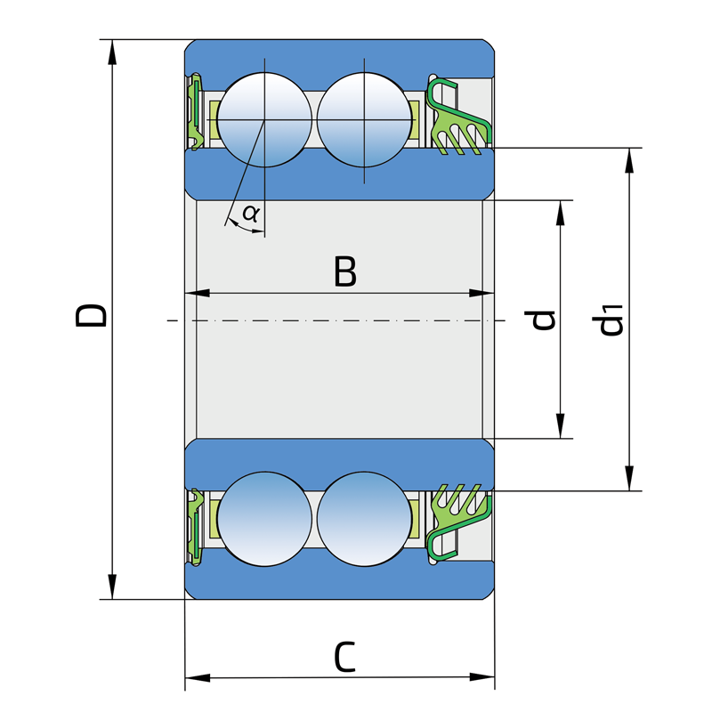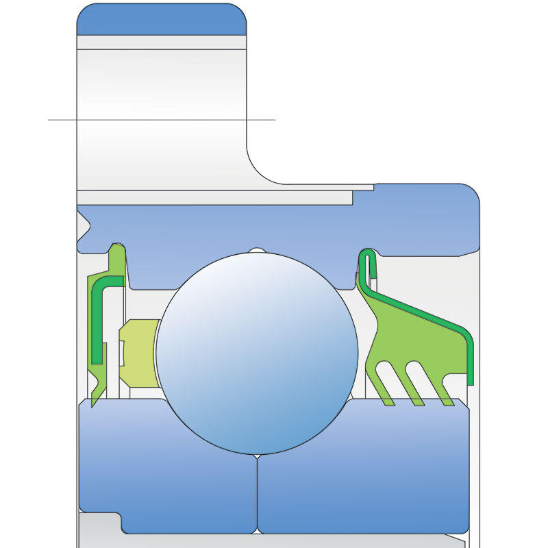 RS seal on the base side and 3-lip seal on the front side which is exposed to contaminants. RS seal on the base side prevents grease from leaking out of the bearing, while the 3-lip seal also protects the bearing from the penetration of contaminants.