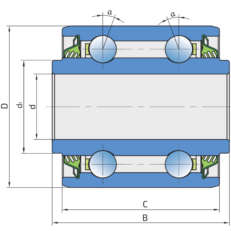 3-lip seal on the both side of the bearing, provides equal protection against contamination. Recommended for application where the possibility of contamination is the same on the both side.