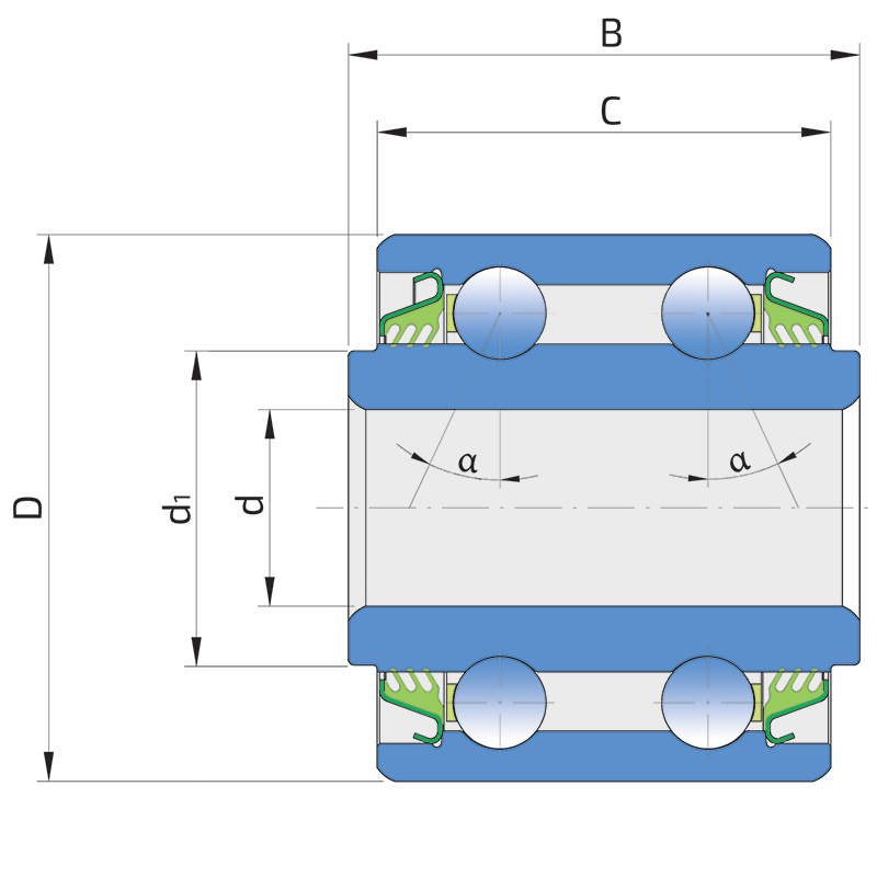 3-lip seal on the both side of the bearing, provides equal protection against contamination. Recommended for application where the possibility of contamination is the same on the both side.