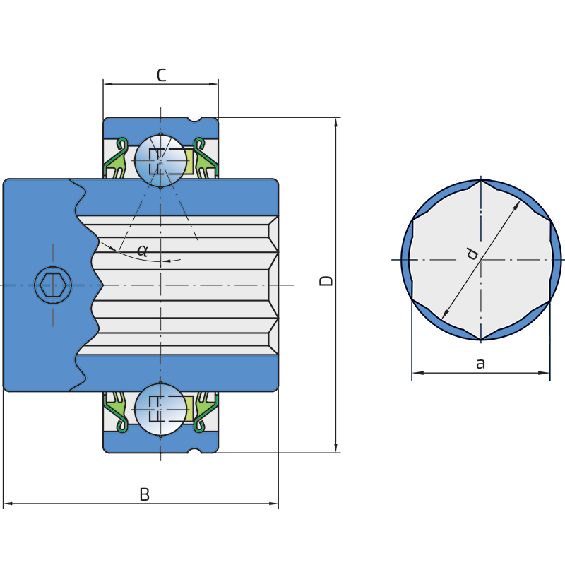 The double lip seal provides twice as good a seal as the S seal, while the maximum permitted rotational speed is adequately lower, due to the greater friction of the rubber lips against the steel inner ring. However, this rotational speed may be higher than with a 3-lip seal, up to 1500rpm. The sheet metal part protects the seal from the soil, dust and rough particles. At the same time makes the labyrinth with the rubber part. The main area of application of bearings with such sealing are agricultural and construction machines at installation place where the rotational speed is up to 1500 rpm.