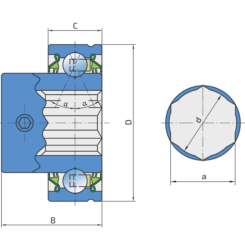 The double lip seal provides twice as good a seal as the S seal, while the maximum permitted rotational speed is adequately lower, due to the greater friction of the rubber lips against the steel inner ring. However, this rotational speed may be higher than with a 3-lip seal, up to 1500rpm. The sheet metal part protects the seal from the soil, dust and rough particles. At the same time makes the labyrinth with the rubber part. The main area of application of bearings with such sealing are agricultural and construction machines at installation place where the rotational speed is up to 1500 rpm.