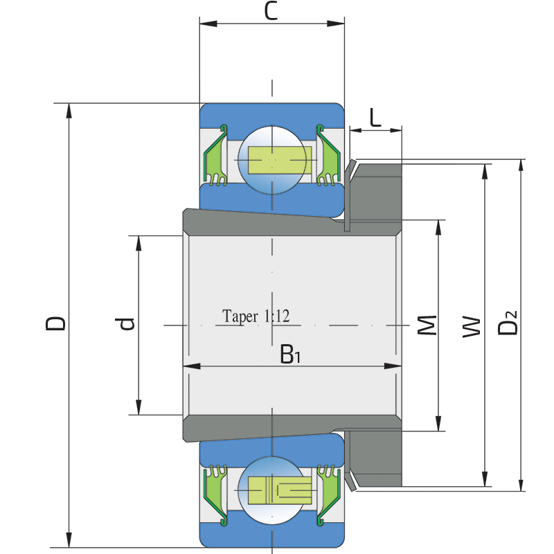 3-lip seal on the both side of the bearing, provides equal protection against contamination. Recommended for application where the possibility of contamination is the same on the both side.