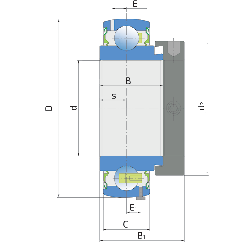 Single lip seal with the labyrinth between the sheet part and the rubber lip which conducts the contact sealing. The friction and speeds are the same as with RS but provides much better protection against the rough impurity particles. This is very good sealing system: the sheet part protects the seal from the soil, dust and rough particles. At the same time makes the labyrinth with the rubber part. The rubber part provides contact sealing which prevents penetration of finer impurities, water, moisture, steam etc. Suitable for neutral conditions because of the presence of the foreign materials. It is used with the Y bearing (standard) and deep groove ball bearings.